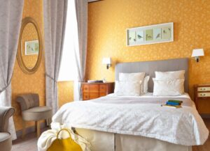 Historic Hôtel d’Argouges is housed in an elegant 18th-century townhouse, set back from the main road and surrounded by lush lawns and tranquil gardens. In the main house, guests will admire a lovely, classic atmosphere: high ceilings, parquet floors, Normandy antiques, and ornate fireplaces. The guest rooms are spread out over three buildings, featuring traditional designs, exposed wood beams and comfortable furnishings, with restorative views of the peaceful landscapes. Located in the city center of Bayeux, guests are perfectly situated for exploration of both Normandy and historic Bayeux, with numerous shops, restaurants and bars only moments away from the hotel.