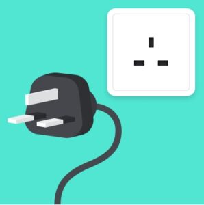 For all devices, you will need a plug converter to accommodate English and French outlets, which are shown below.